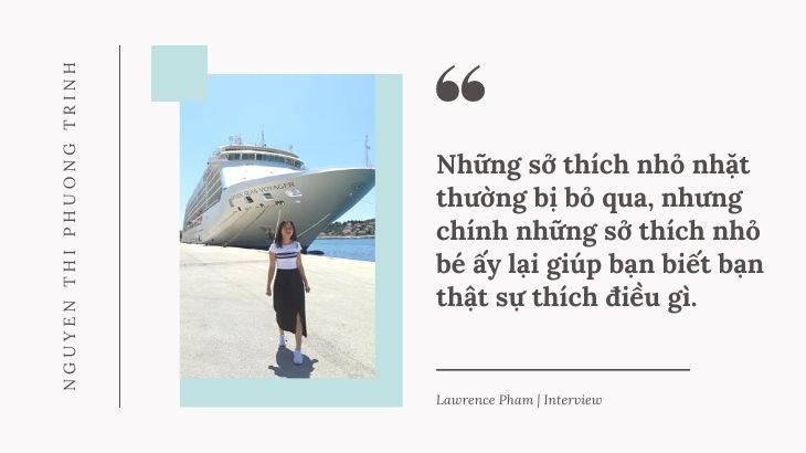 Ngày hôm nay, hãy cùng tôi lắng nghe câu chuyện của chị Nguyễn Thị Phương Trinh – cựu sinh viên ngành Quan hệ quốc tế khóa thứ 11, trường Đại học Khoa học Xã hội và Nhân văn TP.HCM, để hiểu được điều chị muốn gửi gắm: Đừng bao giờ bỏ qua những sở thích nhỏ nhặt nhất.